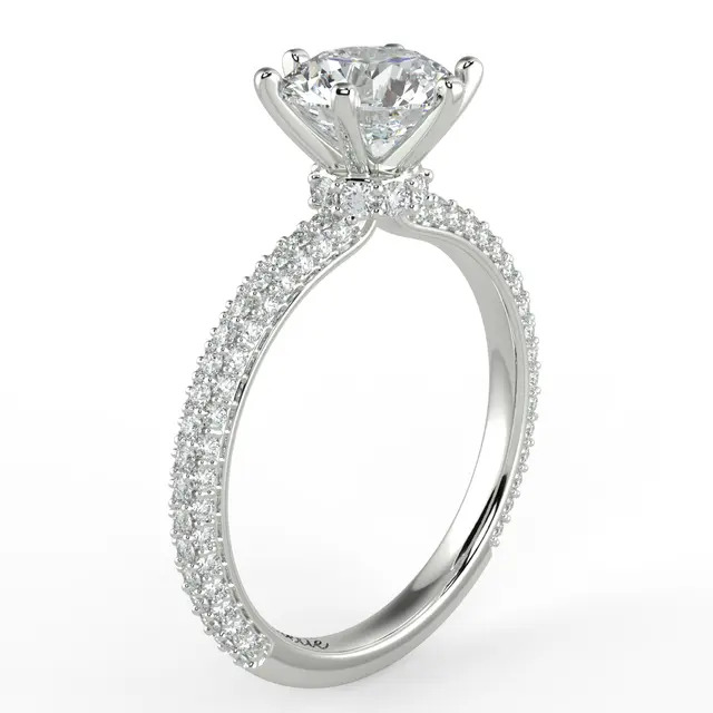 The hidden halo setting is defined by collection of pave or micro-pave diamonds encircles one centre stone in a hidden halo setting. The pave stones around the central gem draw attention to it. Hidden halos can provide you with a stunning engagement ring regardless of your budget. If you want a double brilliant engagement ring, a hidden halo is a good option.