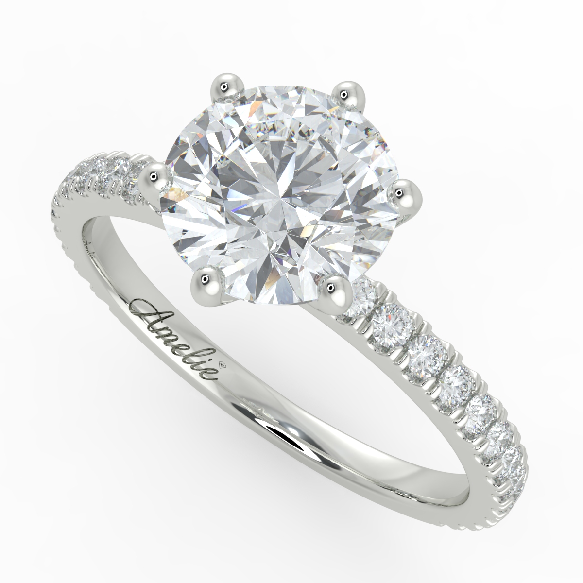 The side stone setting are often called a pavé setting, it is an engagement ring setting in which the ring's shank is lined with small diamonds. These pavé set diamonds are held in place by metal prongs or beads, creating the illusion of a continuous line of small diamonds.