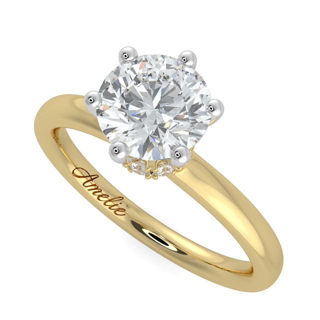 Featuring a 圆形切割 diamond in a marvellous setting, this engagement ring is a lovely way to express your love. Adorned with 圆形切割 diamond, this 单钻 ring is precious and is a timeless beauty to be worn with every style of outfit. A world-class design with the right amount of shine!